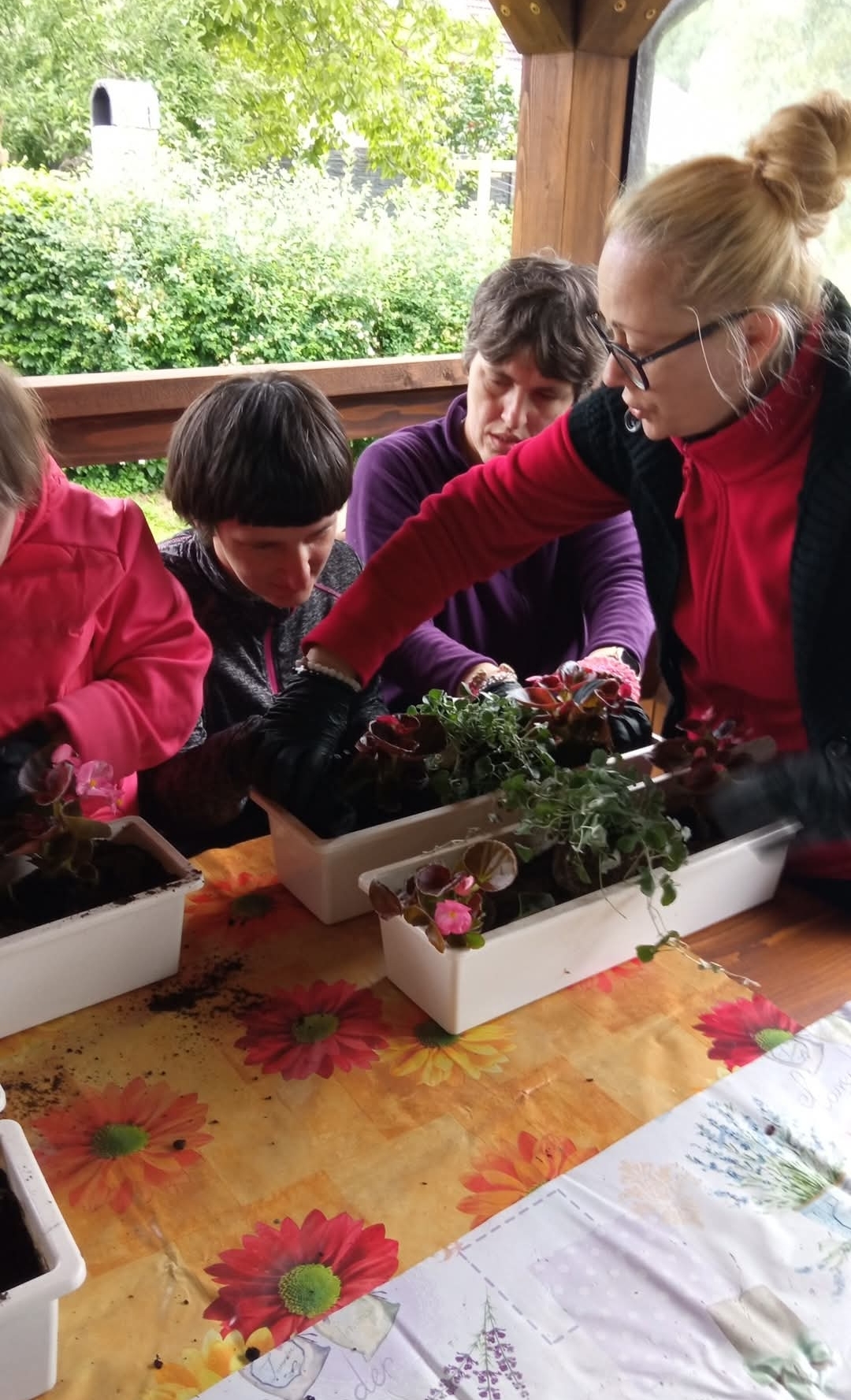 Jarné dni nás nabádajú k obnove a skrášľovaniu, a inak tomu nebolo ani v našom Domove sociálnych služieb v Hanušovciach nad Topľou. Naši hanušovskí prijímatelia, pod vedením šikovného personálu, sa s radosťou pustili do práce a premenili exteriér nášho zariadenia na oázu kvetov a farieb! Hlavnou aktivitou bola výsadba kvetín do kvetináčov. S nadšením si vyberali sadenice, starostlivo ich vkladali do zeminy a polievali vodou, aby sa im darilo. Táto činnosť nie je len o estetike, ale aj o rozvíjaní jemnej motoriky, trpezlivosti a pocitu zodpovednosti za živé bytosti. Je úžasné sledovať, s akou starostlivosťou a láskou sa o rastlinky starali. Hotové kvetináče potom našli svoje čestné miesta – skrášlili parapety na oknách zariadenia, privítali návštevníkov priamo pred vchodovými dverami a rozžiarili ďalšie zákutia exteriéru. Každý kvetináč je teraz malým umeleckým dielom, ktoré svedčí o šikovnosti a kreatívnom duchu našich prijímateľov. Výsledok ich práce je viditeľný na prvý pohľad – farebné kvety vítajú každého, kto prejde okolo, a dodávajú nášmu zariadeniu príjemnú a domácku atmosféru. Táto aktivita priniesla našim prijímateľom nielen radosť z tvorenia, ale aj hrdosť na spoločné dielo, ktoré poteší každého, kto ho uvidí. Ďakujeme všetkým, ktorí sa podieľali na tejto krásnej premene! Ich úsilie a odhodlanie dokázali, že aj malými krokmi sa dá dosiahnuť veľká zmena a skrášliť si tak spoločné prostredie.